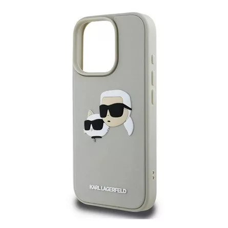 CG MOBILE iPhone 16 Pro Max KARL LAGERFELD 3D RUBBER DOUBLE HEADS szilikon telefonvédő ütésállóság, 3D, BÉZS