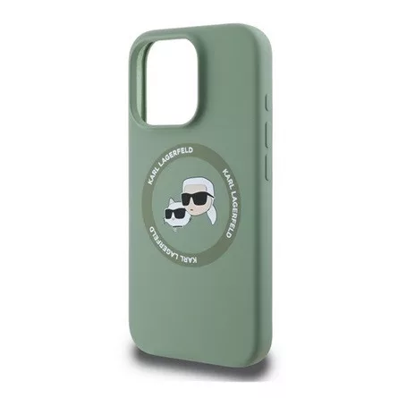 iPhone 16 Pro KARL LAGERFELD LIQUID SILICONE K&CH HEADS MAGSAFE szilikon telefonvédő ütésállóság, MagSafe, SÖTÉTZÖLD