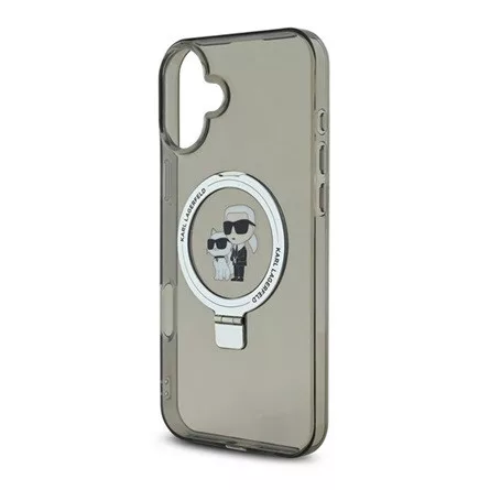 iPhone 16 KARL LAGERFELD RINGSTAND KARL AND CHOUPETTE MAGSAFE szilikon telefonvédő ütésállóság, kitámasztó, FEKETE