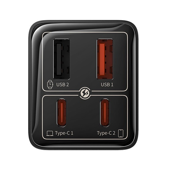 A Baseus GaN6 Pro hálózati gyorstöltő négy USB töltő aljzattal rendelkezik, a legújabb GaN (gallium-nitrid) technológiát használva. A töltő gyors töltést tesz lehetővé 65 W maximális teljesítményével, így a felhasználók villámgyorsan tölthetik a készülékeiket.