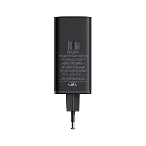 A Baseus GaN6 Pro gyorstöltő négy töltőporttal – két USB Type-C és két USB Type-A – rendelkezik, a legújabb gallium-nitrid (GaN) technológiát használva. A töltő gyors töltést tesz lehetővé 100 W maximális teljesítményével, így a felhasználók villámgyorsan tölthetik eszközeiket.
