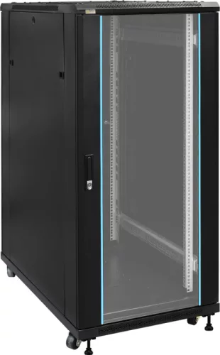 19" 27U 600x1000 álló rack szekrény; lapra szerelt; fekete