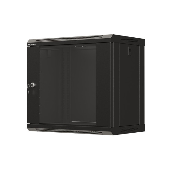 Lanberg 19" fali rack szekrény 9U/540X350 üvegajtó, lapraszerelt, fekete