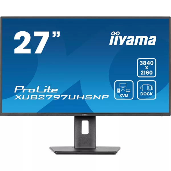 IIYAMA ProLite monitor, IPS, 27", 3840x2160, 16:9, 350 cd/m˛, 4ms, 1300:1, HDMI/DisplayPort/USB-C/RJ45/4xUSB
