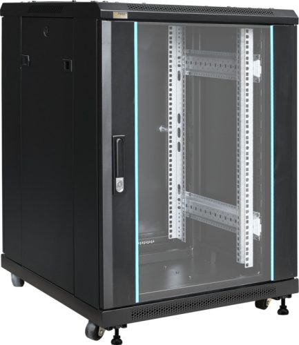 19" 15U 600x600 álló rack szekrény; készre szerelt; fekete